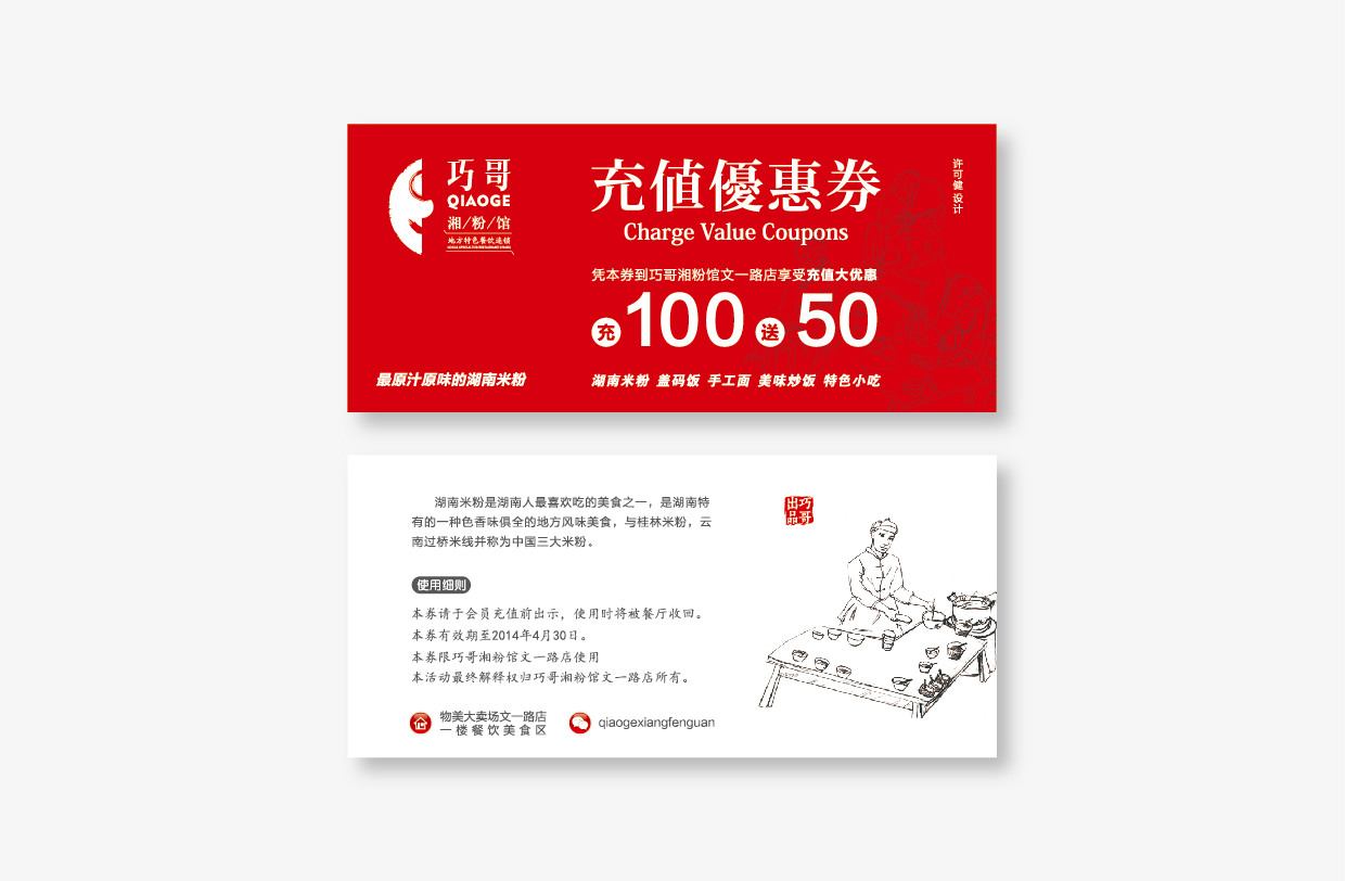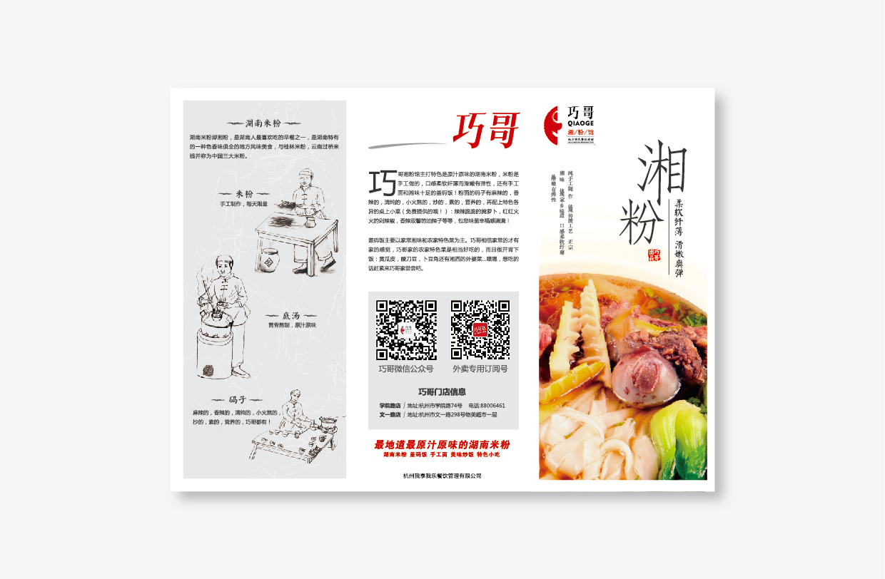 项目:巧哥湘粉馆 客户:杭州我享我乐餐饮管理有限公司 服务:品牌VI设计/品牌传播设计/品牌策略规划 时间:2014年02月