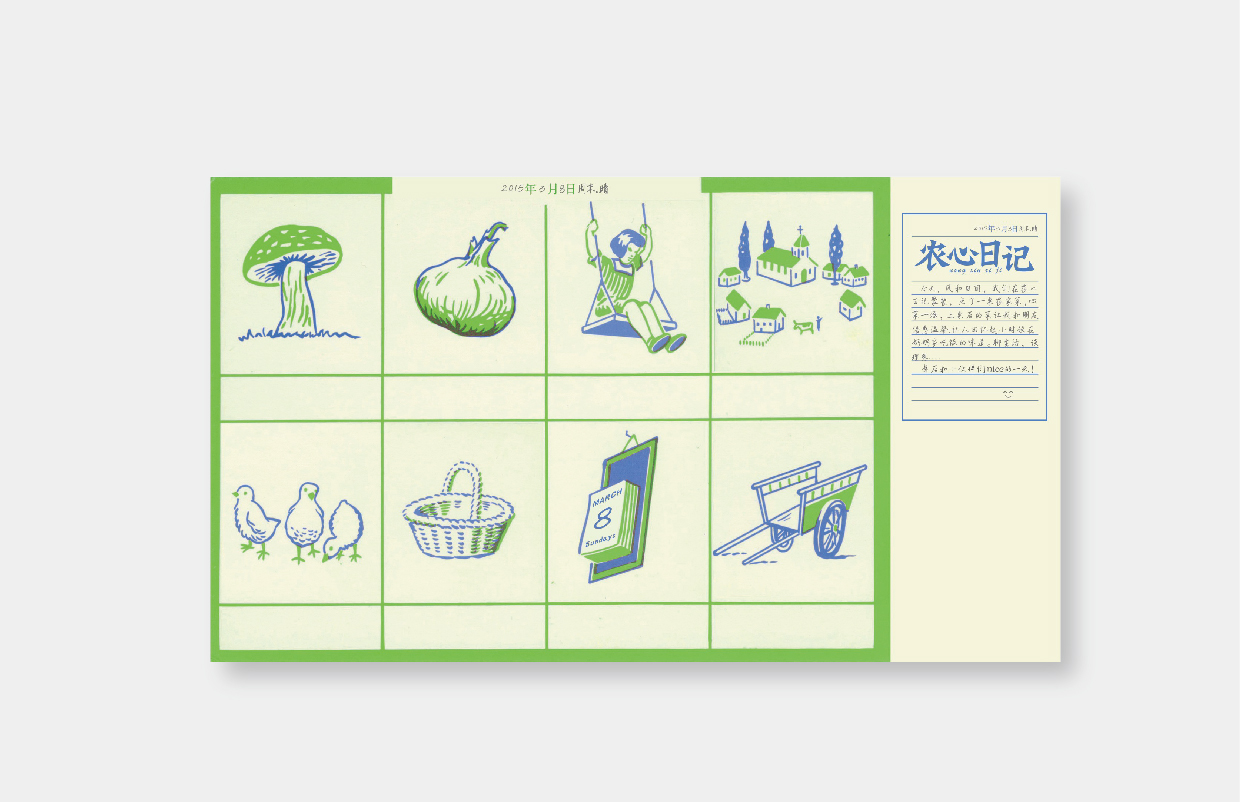 项目:农心日记 客户:嘉兴市经开长水街道农心日记餐厅 服务:品牌VI设计/品牌传播设计 时间:2015年06月