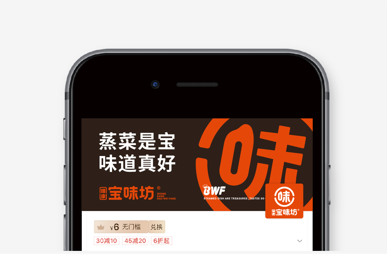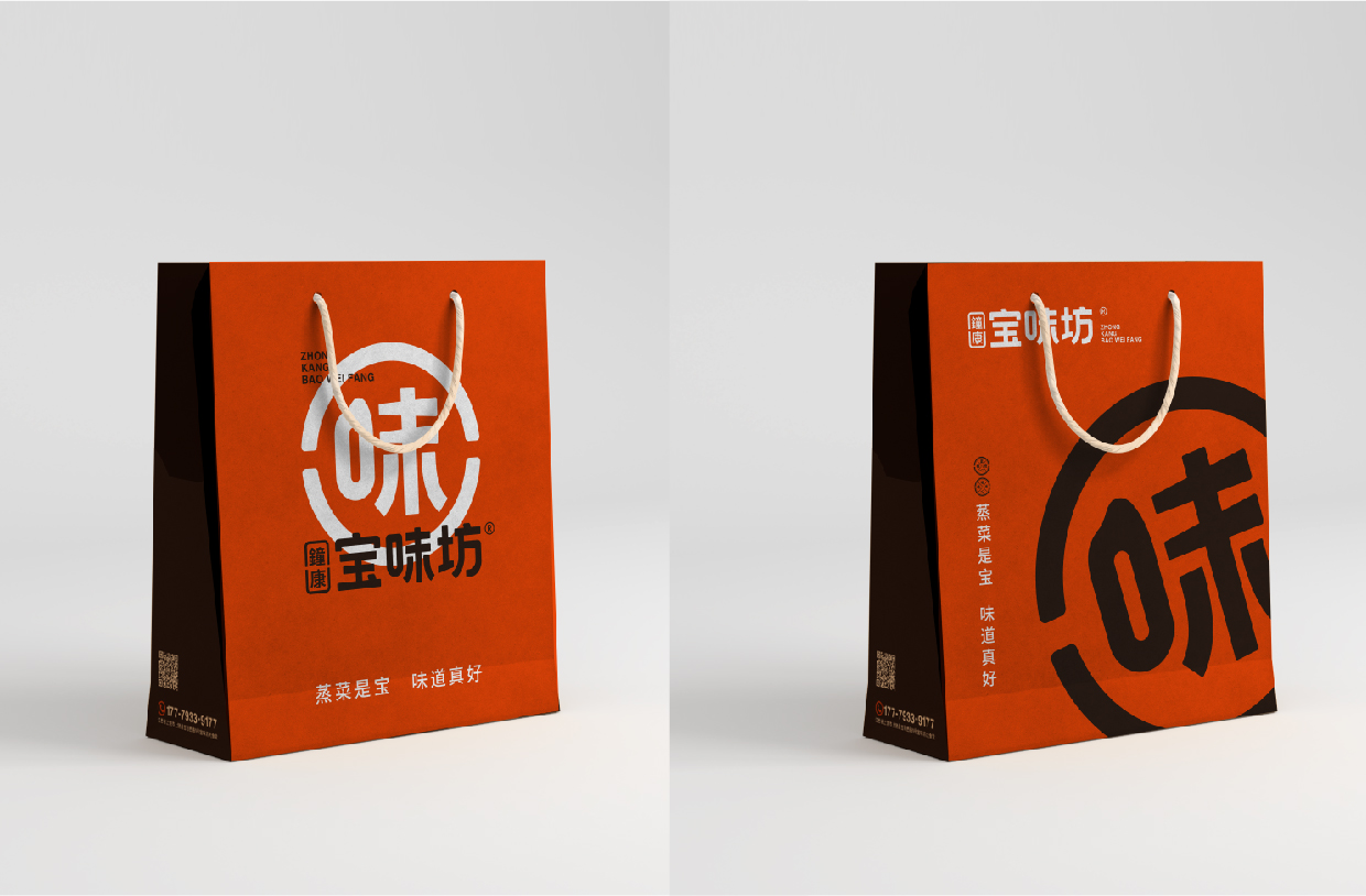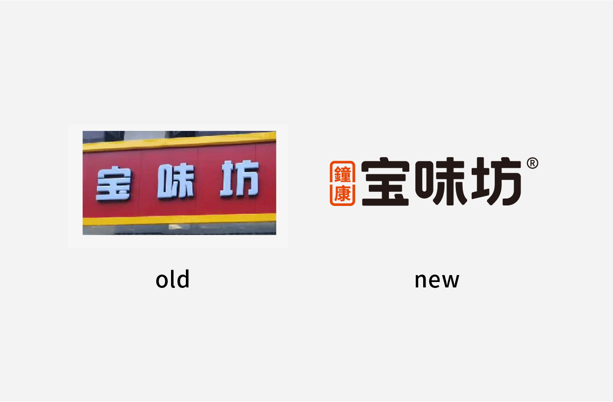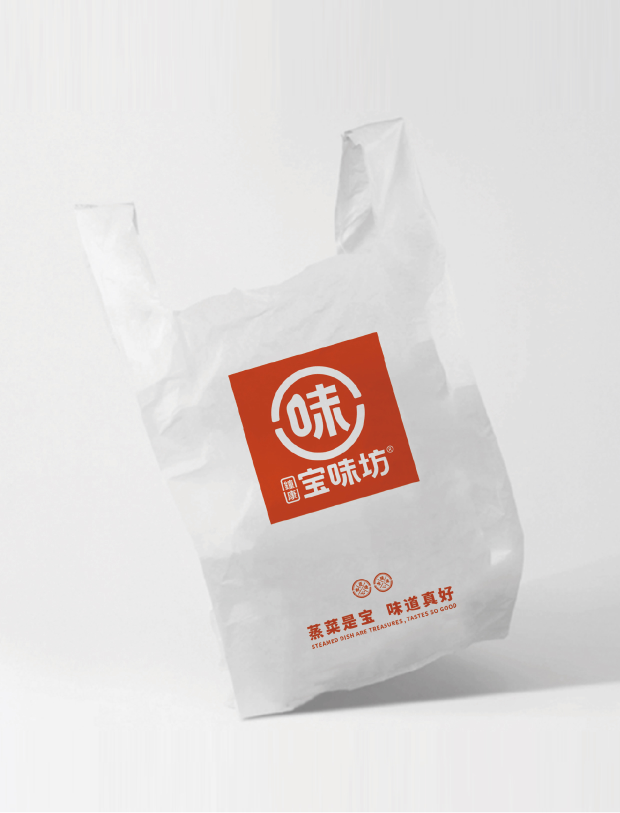 宝味坊的整体字标设计极简大方、大气稳重、高度识别,让人拥有一目了然、精准有效传播的视觉效果。在字体的笔画上做了倒角处理,显得更加圆润、亲民,更加有设计感。左边以印章形式呈现的红色字体“钟康”,传递出宝味坊拥抱时代,正心诚意为顾客服务的经营理念。