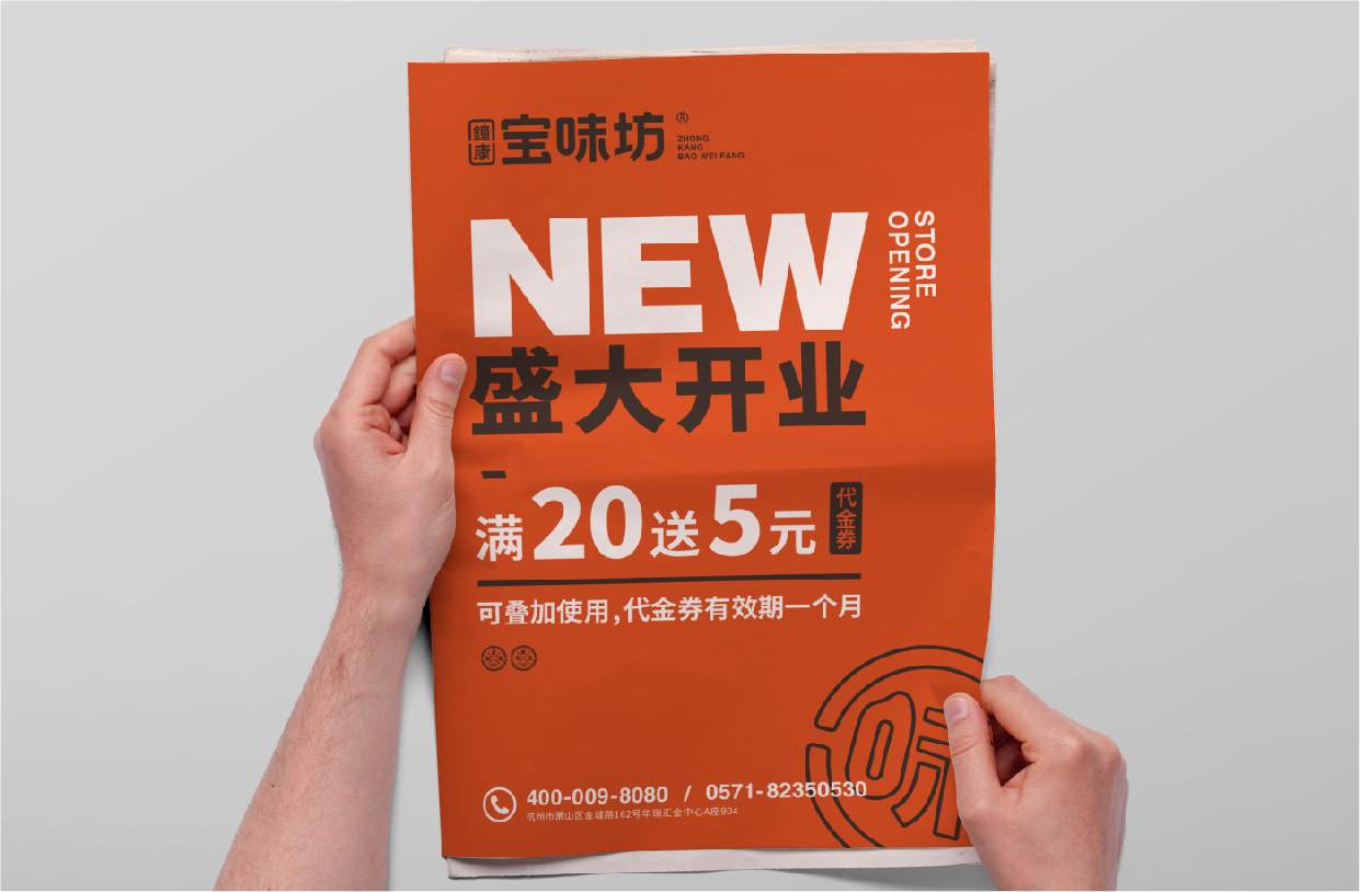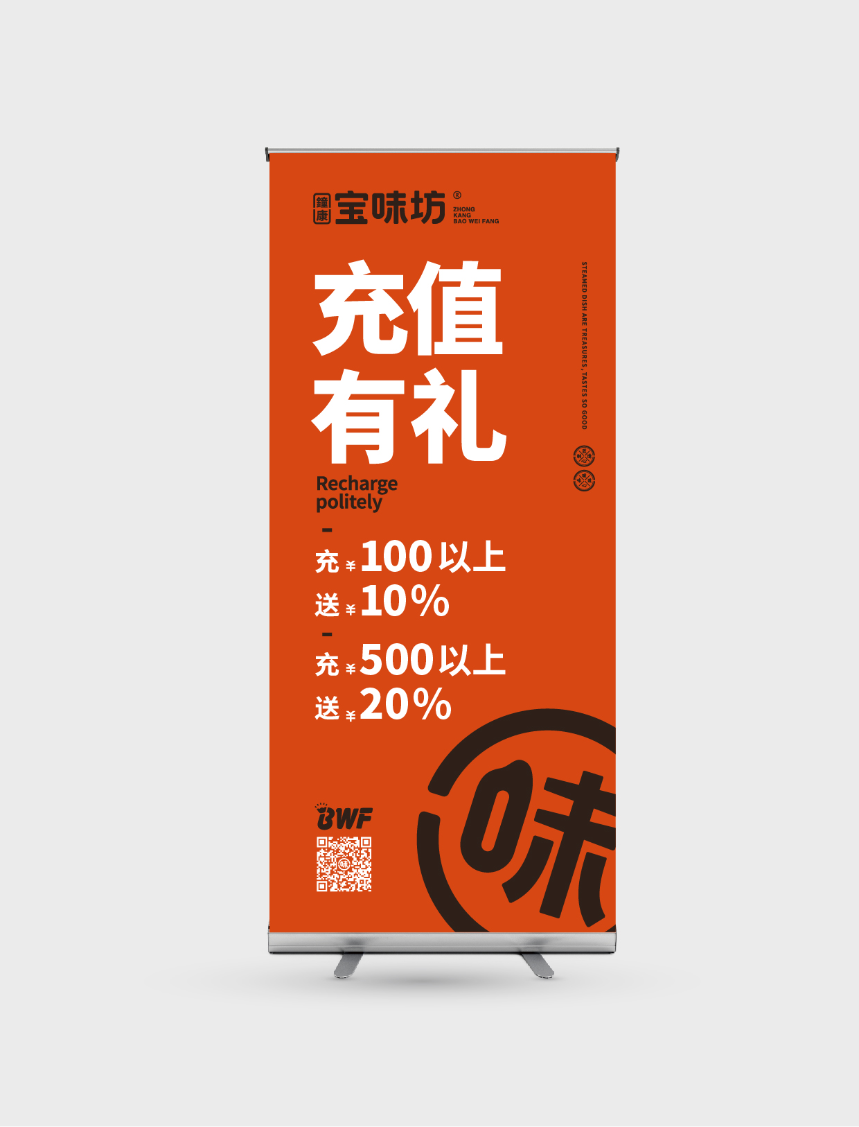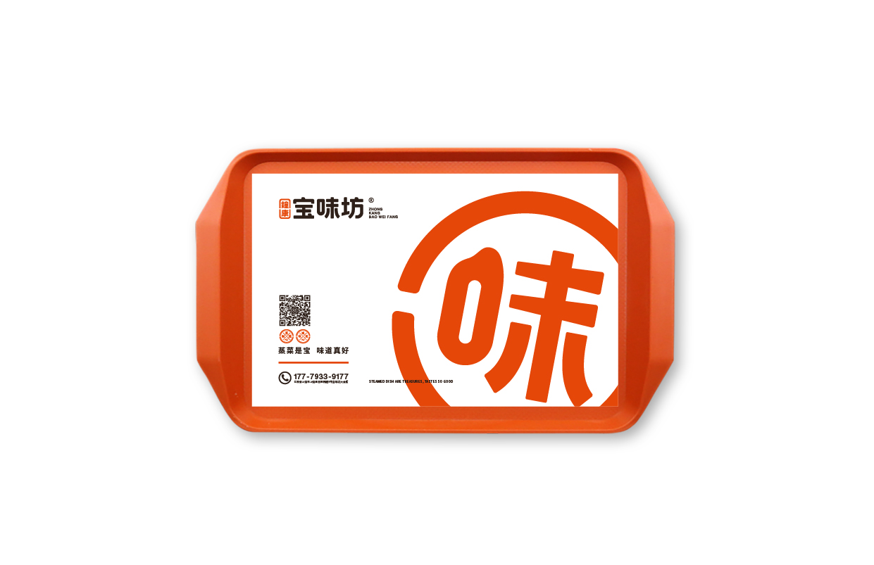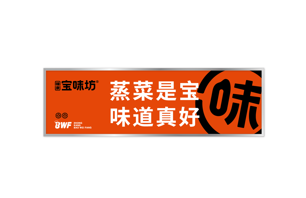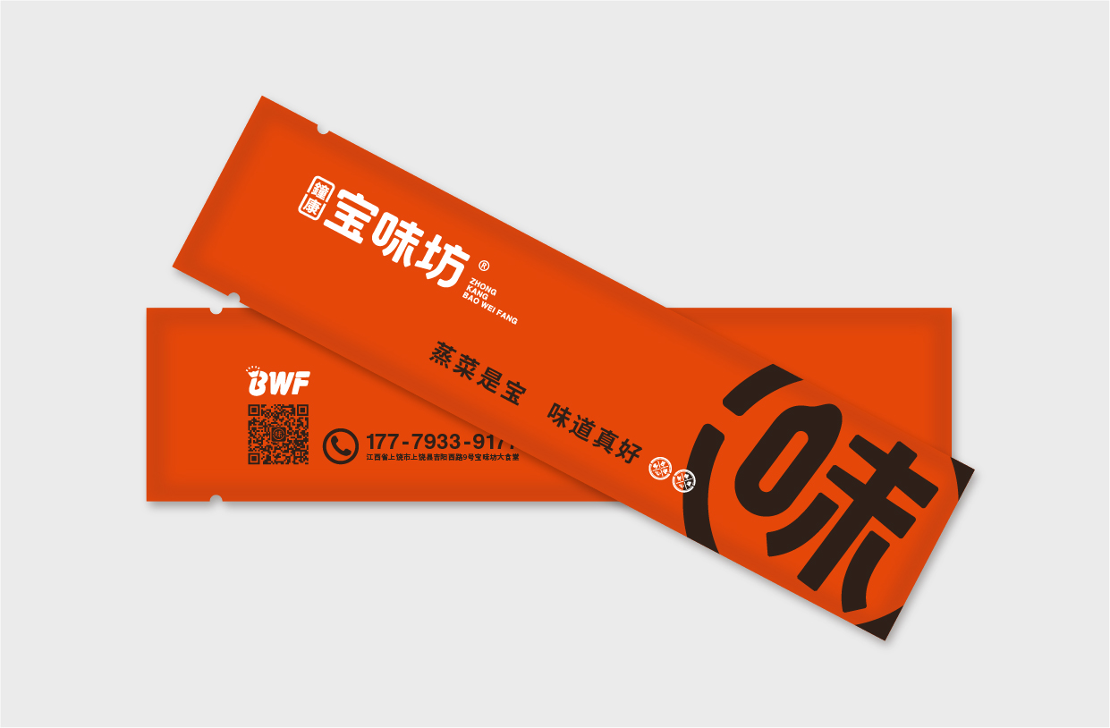 宝味坊的整体字标设计极简大方、大气稳重、高度识别,让人拥有一目了然、精准有效传播的视觉效果。在字体的笔画上做了倒角处理,显得更加圆润、亲民,更加有设计感。左边以印章形式呈现的红色字体“钟康”,传递出宝味坊拥抱时代,正心诚意为顾客服务的经营理念。