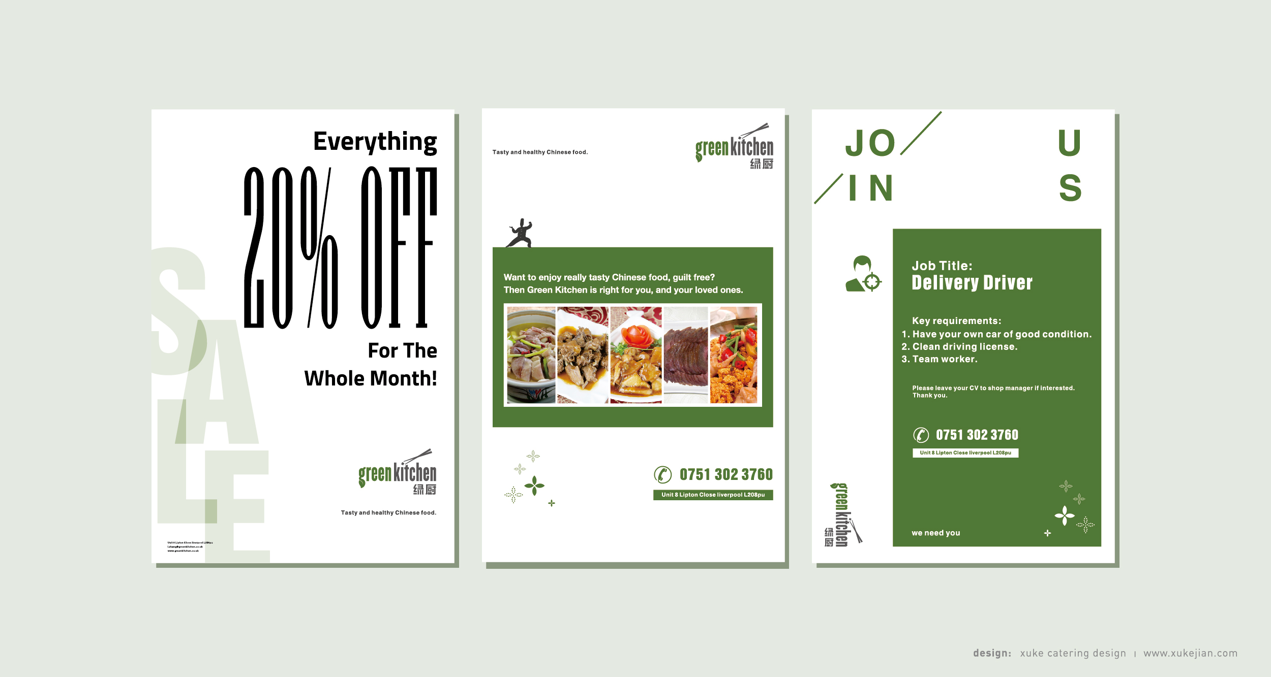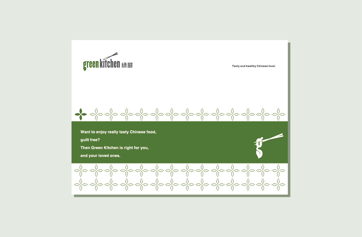 在2017年3月份的某一天晚上,许总监还在沈阳出差的时候,greenkitchen的负责人从英国利物浦联系到了许总监,并委托许可餐饮设计顾问负责策划设计greenkitchen的全套品牌形象。greenkitchen是英国利物浦华人餐厅,定位“健康正统中式快餐”,客群定位是英国本地人,特别是对健康生活方式有一定要求的英国本地人。