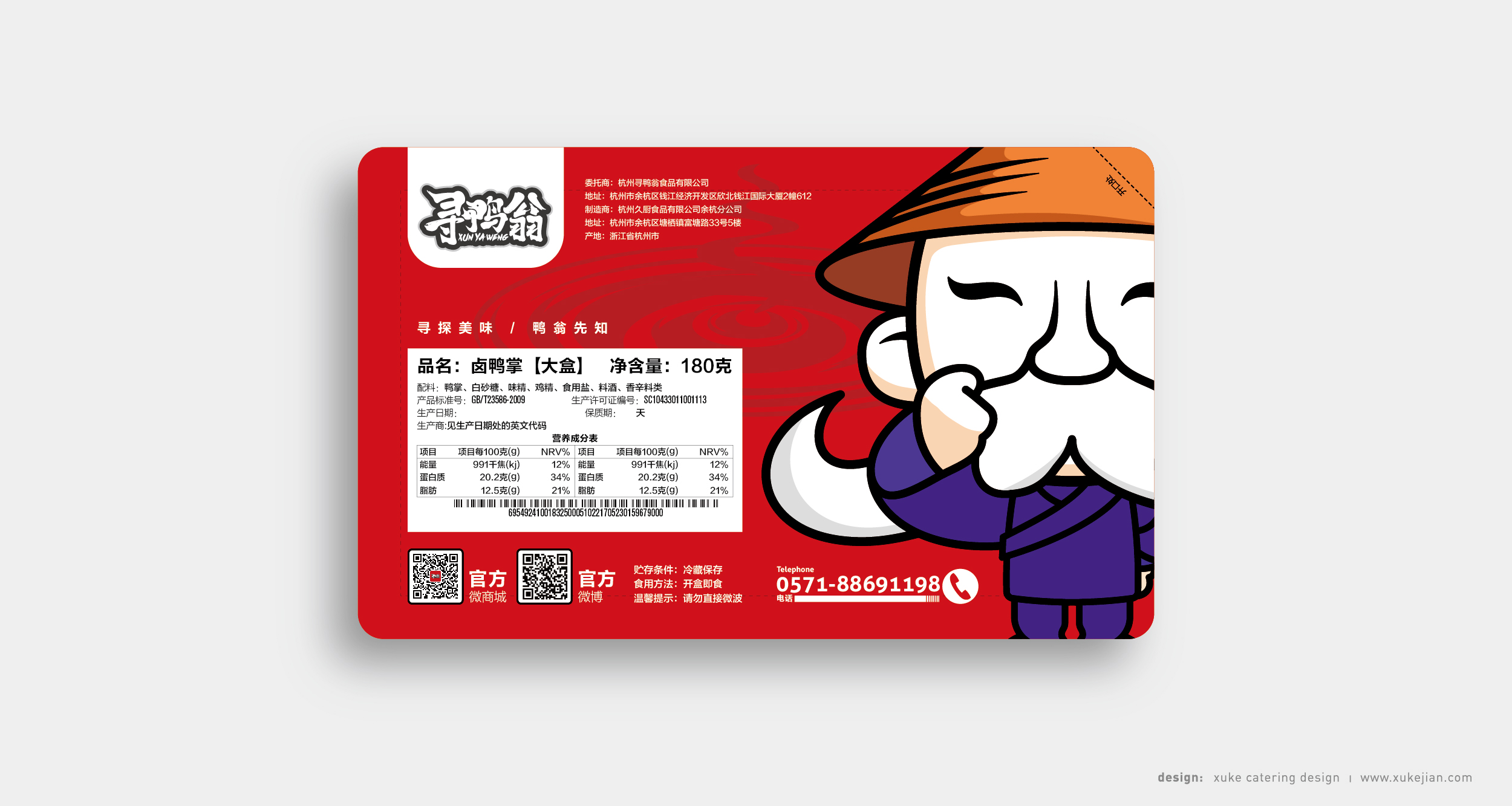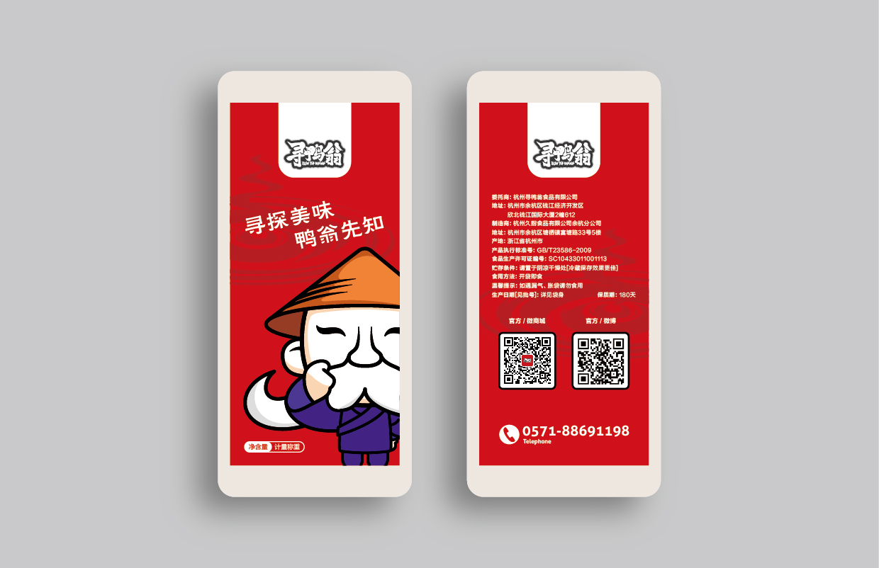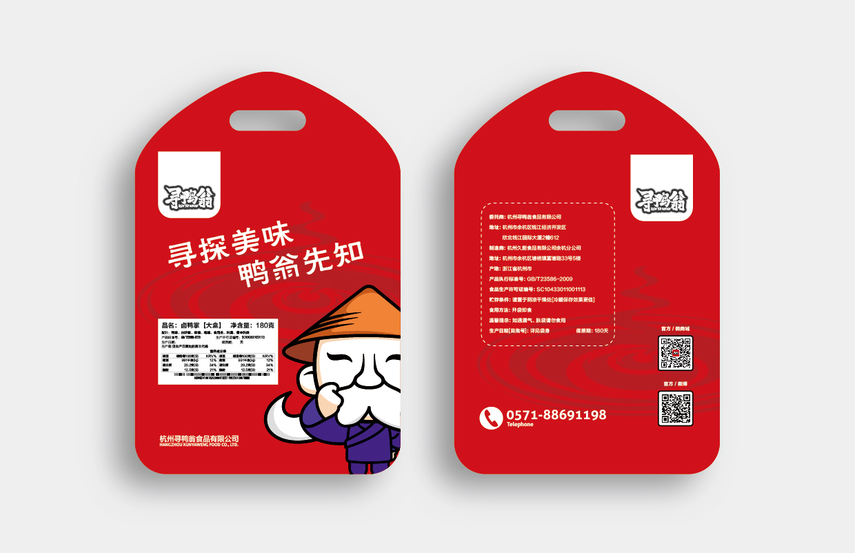 项目:寻鸭翁 客户:杭州寻鸭翁食品有限公司 服务:品牌全案设计 时间:2017年09月