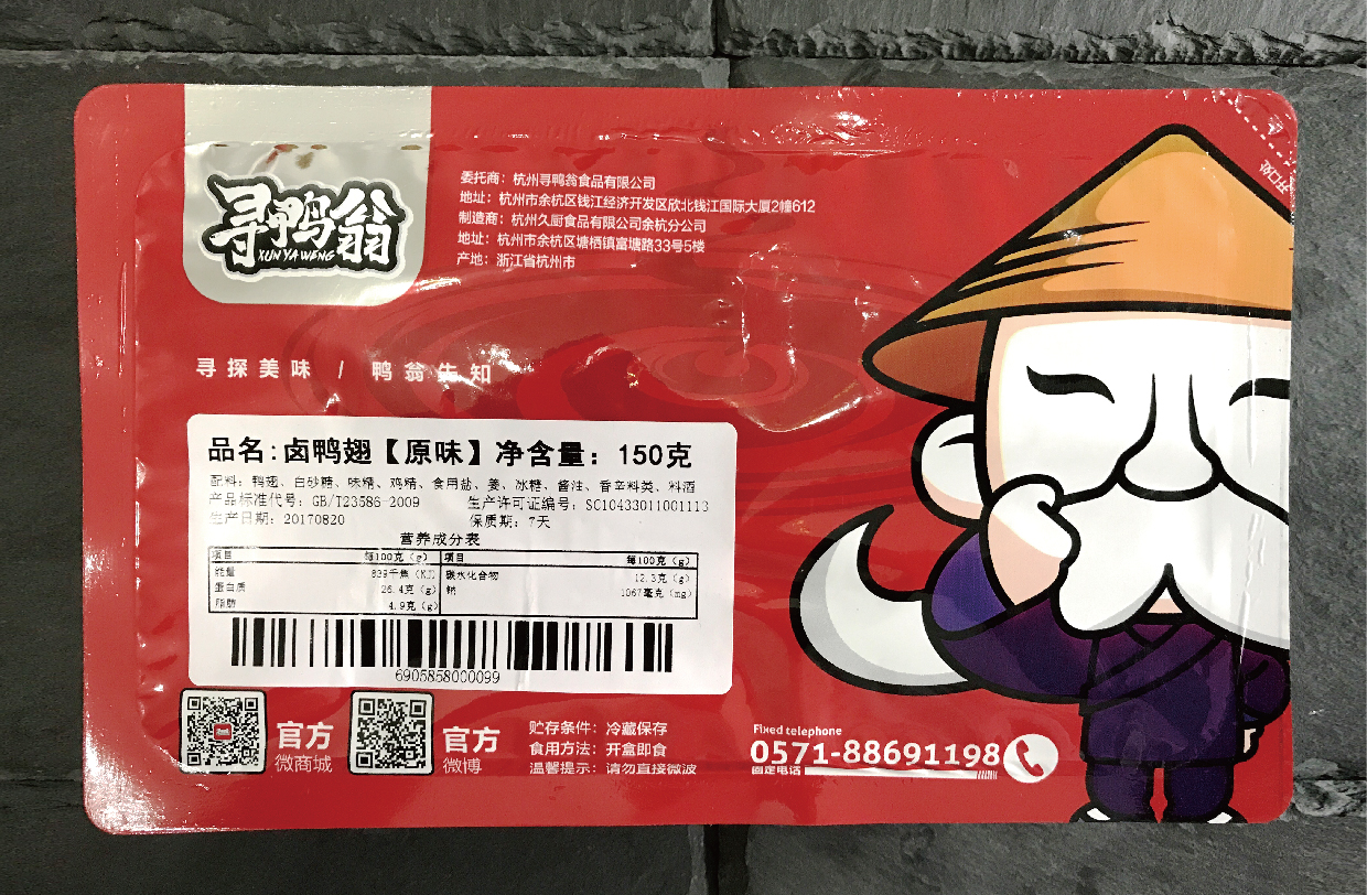 杭州寻鸭翁食品有限公司是一家杭州本土企业,专注于酱卤行业三十余年,致力于发展成为全国知名酱卤制品品牌而不懈奋斗。寻鸭翁以“寻探美味,鸭翁先知”为品牌理念,以产品口味,卫生把控为首要原则,以纯手工制作为特色,真正给消费者满意的“食材优、口味好、更放心”的消费体验。